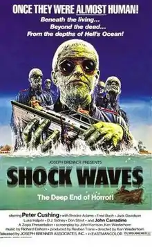 Shock Waves is a 1977 American horror film written and directed by Ken Wiederhorn. The film is about a group of tourists who encounter aquatic Nazi zombies when they become shipwrecked. It stars Peter Cushing as a former SS commander, Brooke Adams as a tourist, and John Carradine as the captain of the tourists' boat.