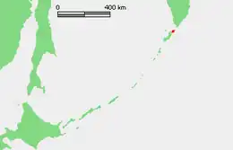 Shumshu (Russian: Шумшу, romanized: Shumshu; Japanese: 占守島, romanized: Shumushu-tō; Ainu: スㇺス (reconstruction), lit. 'good island') is the easternmost and second-northernmost island of the Kuril Islands chain, which divides the Sea of Okhotsk from the northwest Pacific Ocean. The name of the island is derived from the Ainu language, meaning "good island". It is separated from Paramushir by the very narrow Second Kuril Strait in the northeast 2.5 kilometres (1.6 mi), and its northern tip is 11 kilometres (6.8 mi), from Cape Lopatka at the southern tip of the Kamchatka Peninsula. The island has a seasonal population of around 100 inhabitants.