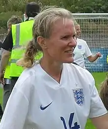 In 1985, she earned a senior cap for Wales, before switching to represent England.[8] Williams played for both England and Wales at international level.[9] She was a non-playing member of England's 1995 FIFA Women's World Cup squad. Williams made twenty appearances for England between 1993 and 2000.