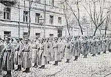 Different detachments of the unit fought against advancing Bolshevik armies in Ukraine. Together with the Directory, the Sich Riflemen fled from Kyiv when it was recaptured by the Bolsheviks. The Riflemen also fought on different fronts against General Denikin's White Russian forces. In 1919, the unit took heavy losses in combat and later from typhus. On 6 December 1919, the unit was finally demobilized. Some former soldiers were interned by the Polish army, others continued to fight in other smaller detachments in Ukraine.