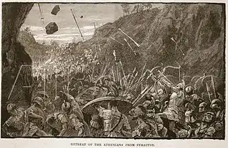 ![]() Destruction of the Athenian army at Syracuse, as drawn in 1900 | |||||||