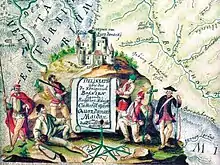 Following the capture of Gvozdansko, Ferhad Bey ordered the destruction of the nearby mines.[66] A permanent Ottoman garrison was placed in the fort in December 1578. Its walls were rebuilt in 1579 and the fort was equipped with additional cannons.[74] Gvozdansko was included into the Sanjak of Bosnia.[75] Due to a lack of strong forts in the Kupa region, Archduke Charles decided to build a new anchor fortress at the mouth of the Korana into the Kupa.[76] The construction of the fortress, named Karlovac after the archduke, began in July 1579, although the Croatian Parliament considered that the location of the fortress would not be of much use in the defense. Ferhad Bey did not disturb the construction of Karlovac, and focused on the repairing of Gvozdansko, Zrin, and other recently captured forts.[77] In 1580, the sons of Nikola IV Zrinski, Juraj IV and Nikola V, led an unsuccessful attack on Gvozdansko,[74] which was to remain under Ottoman control until 1635.[67][78] The Ottomans kept most of the surrounding forts until late 17th century and the Great Turkish War.[79]