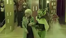 The next scene shows the Green Goblin trying to kidnap Watson, but Spider-Man disorients him by throwing a web over him and Watson uses the distraction to escape. Doctor Octopus then appears and begins to catch and kill various citizens with his claws. The next scene atop a bus shows Doctor Octopus trying to take Watson away, but she manages to run away after hitting him. Spider-Man then appears, fighting the villain and "killing" him. He is shown being lowered down and Watson comes to him, removing his goggles and revealing his identity. Then, the boy dressed as the spider comes up to her and kisses her on the cheek. The children bow down to thank the applauding audience, and a scene then shows the "spider" and Watson on a web, with the "spider" smiling for the first time. The "black Spider-Man" then makes an appearance, holding a board which reads "Coming soon! Spider-Man 3".