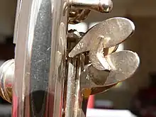 The Silva-Bet, body and keys, is made of an alloy variously known as maillechort, German silver or nickel silver, and is plated with silver. The toneholes, except on the earliest examples, have widened tops to improve the sealing and durability of the pads. First made with a one-piece body with detachable barrel, the Silva-Bet clarinet was later available with a two-piece body plus detachable barrel. The barrel of the Silva-Bet features a telescoping mechanism for tuning the instrument. There are at least two varieties of tuning barrel, one with a thick head and two slim rotating rings at the top, the other with a thin head with a single rotating sleeve in the middle.[4]