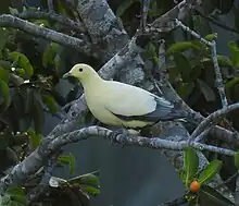 The silver-tipped imperial pigeon (Ducula luctuosa), also known as the white imperial pigeon or white-tipped imperial pigeon, is a relatively large species of bird in the family Columbidae. It is endemic to forest, woodland and mangrove on Sulawesi and smaller nearby islands.