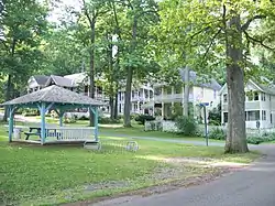 Silver Lake Institute Historic District is a national historic district located at Silver Lake in Wyoming County, New York. The district consists of 13 acres (5.3 ha) and is historically significant because of its association with the Silver Lake Institute, a Methodist-affiliated camp facility established in 1873. The properties reflect the evolution of the institute from a Methodist Revivalist summer camp in the 1870s and 1880s to a cultural, educational, and religious summer institute in the Chautauqua tradition during the 1880s and 1890s, and finally to a secular summer cottage community in the early 20th century. The focal point of the community is the 2.03-acre (0.82 ha) Burt Park and the district includes 72 additional properties including 70 cottages.[2]