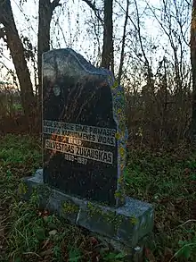 Žukauskas' grave was demolished in 1959 after the occupying Soviet authorities converted the Kaunas City Old Cemetery into Ramybė Park. Despite archaeological excavation efforts carried out in 2012, the original grave was never found.[10][53]