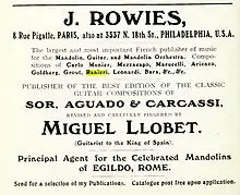 Silvio Ranieri (1882 – 1956) was an Italian Mandolin virtuoso. Born in Rome, he gave his first concert in 1897, aged fifteen, and he went on to tour Europe to great acclaim.[1] It was his desire to elevate the Mandolin to a status similar to the violin in classical music, and he did much to contribute to the immense popularity of the mandolin in the 1920s. Later settling in Brussels he established a tradition of Mandolin music in northern Europe. He always played Mandolins produced by Luigi Embergher, which he compared to the Stradivarius violin in perfection. Ranieri once visited Embergher's shop in Rome and tried out an instrument marked Gold Medal Paris 1900. When he wanted to buy it the luthier replied that it was not for sale, but that he could play it at the evening recital. After the recital Embergher approached Ranieri and offered him the instrument as a gift.[2]