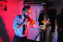 Simon Wilkinson is a British transmedia artist. His work incorporates audiovisual, installation, virtual reality, electronic music, and online and performance media, often combining all of these forms simultaneously. Wilkinson describes transmedia as 'the practice of telling a story through multiple platforms; so that, for example, instead of making a website ‘about’ the theatre piece, the website becomes an embedded part of the narrative.'[1] He often uses transmedia platforms in order 'to disrupt consensus reality and immerse audiences in experiences which blur the line between truth and fiction.'[2]