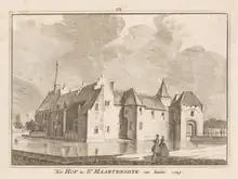 The village of Sint-Maartensdijk was previously named Haestinge. Some say this referred to a hare haas which is also on the old coat of arms of the village.[1] Others say that Haestinge comes from 'Haast-Ee', another old name for the Pluimpot.[2] Anyway, the inhabitants of Haestinge were mentioned as such in 1357.[3] After 1357 a new church was founded dedicated to Martin of Tours, and the village was renamed accordingly.[2] In 1485 the village became a small city, and was fortified.[4]