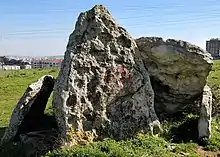 Ceramic fragments found locally including many late Chalcolithic vases from the Sintra mountains suggest that between the fourth and third millennia B.C. the region (adjacent to the present village of Sintra) was occupied by a Neolithic/Chalcolithic settlement, with characteristics comparable to fortified settlements in Lisbon and Setúbal.[18] The evidence discovered in Quinta das Sequoias and São Pedro de Canaferrim contrasts dramatically with those remnants discovered in the walled town of Penha Verde and the funerary monument of Bella Vista.[18] Traces of several Bronze Age remains were also discovered in many places in the Sintra Mountains, including alongside the town, in the Monte do Sereno area, and a late Bronze Age settlement within the Moorish Castle dating to the 9th–6th centuries B.C.