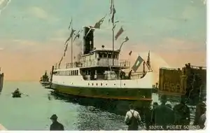 Sioux was a steamship which was operated on Puget Sound and the Strait of Juan de Fuca from 1912 to 1941. From 1924 to 1941, following reconstruction, the vessel operated as an auto ferry under the name Olympic. During the Second World War (1941-1945) this vessel was taken under the control of the U.S. Army and renamed the Franklin R. Leisenburg. The Liesenburg served as a ferry in the Panama Canal area under Army control, and then was sold to a firm which ran the vessel on the Surinam river in South America.