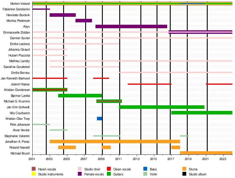 - Morten Veland – guitars, harsh vocals, other instruments on studio (2001–present), live bass (2018–2020)