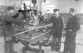 Yhteissisu finally found a suitable area for vehicle production in municipality of Vanaja, next to Hämeenlinna, where it built a facility of 25 000 m2.[13] The first prototype built in the new factory rolled out from the production line on 1 August 1945. Different from the SAT production, the model produced in the new factory was named S-22. After a short but intense testing period the serial production was started on 29 October. During the testing it came out that the lorry could not be tested at its full eight tonnes load because the maximum weight on the nearby road was limited to seven tonnes. Test run was finally permitted after the company was granted a licence to drive overweight for testing purposes.[14] The main difference between the SAT and Yhteissisu produced lorries was in wheel bearings; the S-21 used imperial units, whereas the S-22 was with metric bearings.[11]
