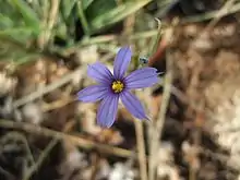 Sisyrinchium funereum is an uncommon species of flowering plant in the family Iridaceae known by the common names Funeral Mountain blue-eyed grass[2] and Death Valley blue-eyed-grass. It is endemic to the Mojave Desert of the United States, where it is known only from the Funeral Mountains and Death Valley area in eastern California, and the Ash Meadows area just over the border in Nevada. It grows in wet, highly alkaline habitat, such as seeps and mineral springs.