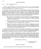 The proclamation of the New Territories of Hong Kong by Colonial Secretary James Stewart Lockhart.