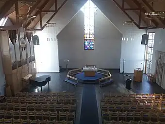 The foundation stone was laid on 6 June 1997 and it was completed in less than one year. After its completion, the church was consecrated on 5 April 1998 by the Bishop Ole Hagesæther. The architect for the church was Peter A. Ristesund and Aud Hundskår was in charge of the interior design. The main sanctuary seats about 280 people, but it is expandable up to about 500 by moving some folding walls.[3][4]