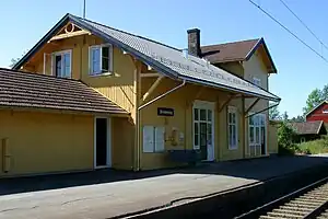 The village of Skollenborg is the site of Skollenborg Station (Skollenborg stasjon), a disused railway station on the Sørlandet Line. The station was served by local trains between Kongsberg via Oslo to Eidsvoll operated by Norges Statsbaner until 2012. To the west of the village lies the Skollenborg power plant (Skollenborg kraftverk).[2][3]