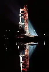 NASA management was concerned about losing the 400,000 workers involved in Apollo after landing on the Moon in 1969.[24] A reason von Braun, head of NASA's Marshall Space Flight Center during the 1960s, advocated a smaller station after his large one was not built was that he wished to provide his employees with work beyond developing the Saturn rockets, which would be completed relatively early during Project Apollo.[25] NASA set up the Apollo Logistic Support System Office, originally intended to study various ways to modify the Apollo hardware for scientific missions. The office initially proposed a number of projects for direct scientific study, including an extended-stay lunar mission which required two Saturn V launchers, a "lunar truck" based on the Lunar Module (LM), a large, crewed solar telescope using an LM as its crew quarters, and small space stations using a variety of LM or CSM-based hardware. Although it did not look at the space station specifically, over the next two years the office would become increasingly dedicated to this role. In August 1965, the office was renamed, becoming the Apollo Applications Program (AAP).[26]