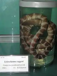 - Kharin V (1984). "[A review of sea snakes of the group Hydrophis sensu lato (Serpentes, Hydrophiidae). 3. The genus Leioselasma]". Zoologicheskii Zhurnal 63 (10): 1535–1546. (Leioselasma coggeri, new species, p. 1538). (in Russian).