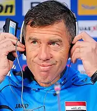 In October 2011, the Football Association of Slovenia appointed Slaviša Stojanović as the new manager.[52] He led the team in only nine matches, including the first four matches of the 2014 FIFA World Cup qualifiers, where Slovenia recorded one victory and three defeats.[53] He was sacked by the end of 2012 and was replaced by Katanec, who had previously led the team between 1998 and 2002.[54][55] Under his leadership, Slovenia lost at home to Iceland, before winning four consecutive games to finish third in the group, two points behind Iceland.[53] In the qualifiers for UEFA Euro 2016, Slovenia came close to directly qualifying for the tournament for the first time, however, the team lost a decisive game away to Switzerland.[56] Slovenia led 2–0 with less than 15 minutes remaining, but the Swiss team then scored three times to win 3–2.[57] As the third-placed team, Slovenia advanced to the playoffs, where they were eliminated by the Ukraine 3–1 on aggregate.[56] The qualifiers for the 2018 FIFA World Cup were similar to the previous ones, as Slovenia narrowly lost two decisive away matches against Slovakia and England.[58] After the defeat at Wembley, where Harry Kane scored the only goal of the match in the 94th minute, Katanec announced his resignation as the manager.[59] In December 2017, Tomaž Kavčič became the new manager.[60]