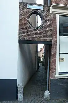 Smedestraat 33 (Dutch: Smedestraat 33) is the address of a doorway in Haarlem. The brickwork of the doorway, including a round false window, is from the second half of the 17th century, and has been declared one of the national monuments of The Netherlands.