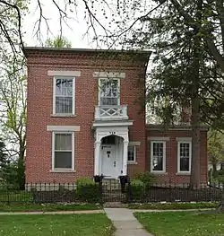 The Smith–Johnson House, also known as The Old Brick, is a historic residence located in Oskaloosa, Iowa, United States. It was built for William T. Smith in 1853, the same year he was elected as the first mayor of Oskaloosa.[2] A lawyer, Smith was a native of Pennsylvania who settled in the town in 1848 and became county attorney the same year. In addition to his political and legal responsibilities he founded the first bank in town, and he was involved with other profitable financial ventures. He lived in the house until 1865 when Abijah Johnson, a Quaker merchant who moved to Oskaloosa to be a part of the flourishing Quaker communities here and in the surrounding areas. John Kelly Johnson, an attorney who served in the Iowa Senate, took over the house after his father's death in 1894.