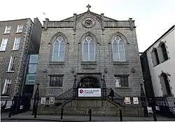 The current Smock Alley Theatre (Irish: Amharclann Scabhat Smock)[1] is a 21st-century theatre in Dublin, converted from a 19th-century church building, incorporating structural material from an 18th-century theatre building, and built on the site of the 17th century Theatre Royal, Dublin. The present theatre was opened in 2012, after a €3.5 million investment.[2]