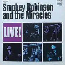Smokey Robinson & the Miracles LIVE! (TS289) is a 1969 album by R&B group The Miracles (aka "Smokey Robinson & the Miracles"). Issued on Motown's Tamla label, it is the second of three live albums the Miracles recorded during their career. The album was recorded in 1968 at Detroit's famous Roostertail Restaurant, a popular venue where Motown artists appeared during the 1960s and 1970s. Released January 6, 1969, it charted at #71 on the Billboard Pop Album Chart and peaked at #7 on the Billboard R&B Album Chart.