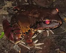 The smoky jungle frog (Leptodactylus pentadactylus) is a species of frog in the family Leptodactylidae. It is found in Bolivia, Brazil, Colombia, Ecuador, Costa Rica, Panama, French Guiana, and Peru.[2] Its natural habitats are tropical and subtropical moist broadleaf forests, subtropical or tropical swamps, subtropical or tropical moist montane forest, rivers, freshwater marshes, intermittent freshwater marshes, and aquaculture ponds.
