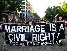 Socialist Alternative members marching for LGBT rights in Seattle, Washington