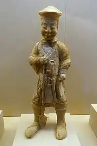 Artisans and craftsmen during the Han had a socio-economic status between that of farmers and merchants.[63] Yet some were able to obtain a valuable income, such as one craftsman who made knives and swords and was able to eat food fit for nobles and officials.[64] Artisans and craftsmen also enjoyed a legal status that was superior to merchants. Unlike lowly merchants, artisans were allowed by law to wear fancy silks, ride on horseback, and ride in carriages.[64] There were also no laws which barred artisans from becoming officials. An artisan painter who worked at the Imperial Academy turned down many offers to become nominated for public office.[65] In contrast, a bureaucrat who appointed a merchant as an official could suffer impeachment from office, while some even avoided nominations by claiming they were merchants.[65]