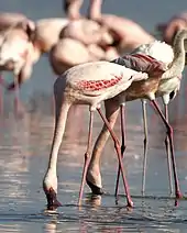 Multicellular animals such as crustaceans (notably the brine shrimp Artemia and the copepod Paradiaptomus africanus) and fish (e.g. Alcolapia), are also found in many of the less extreme soda lakes, adapted to the extreme conditions of these alkalic and often saline environments. Particularly in the East African Rift Valley, microorganisms in soda lakes also provide the main food source for vast flocks of the lesser flamingo (Phoeniconaias minor). The cyanobacteria of the genus Arthrospira (formerly Spirulina) are a particularly preferred food source for these birds, owing to their large cell size and high nutritional value.