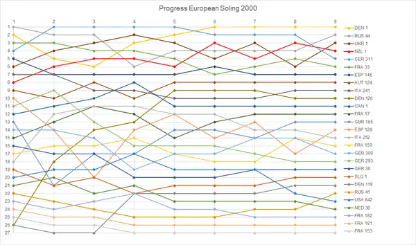 - ↑ "Soling European Championship" (ASCII). site-isaf.soticcloud.net. World Sailing. 11–17 June 2000 [2000]. Retrieved 26 January 2022.