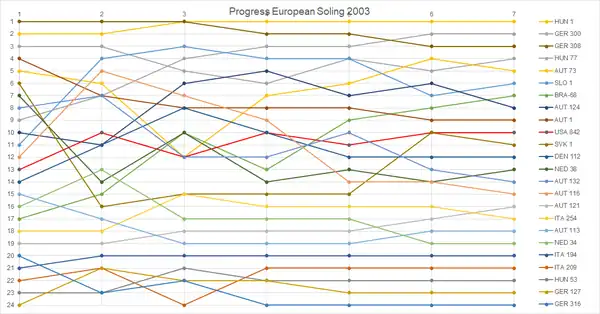 - ↑ "SOLING EUROPEAN CHAMPIONSHIP" (ASCII). site-isaf.soticcloud.net. World Sailing. 31 August – 4 September 2003 [2003]. Retrieved 7 February 2022.