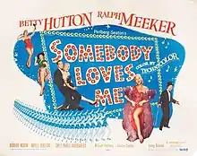 Somebody Loves Me is a 1952 American comedy-drama musical film starring Betty Hutton. "Spanning the colorful era that was born with the San Francisco earthquake and ended with the stock market crash," the story focuses on the careers of entertainers Blossom Seeley and Benny Fields.[2]