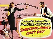 Something Money Can't Buy is a 1952 British comedy drama film directed by Pat Jackson and starring Patricia Roc, Anthony Steel and Moira Lister.[2] The film was made with backing from the NFFC as part of its British Film-Makers project with the Rank Organisation.[3] The film was distributed by Rank's General Film Distributors. In America it was released by Universal Pictures in 1953.