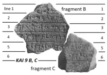 - ↑ Donner, Herbert; Rölig, Wolfgang (2002). Kanaanäische und aramäische Inschriften (5 ed.). Wiesbaden: Harrassowitz. p. I, 2.
