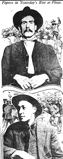 - ↑ "Figures in Yesterday's Riot at Plaza" and "The Dead and Injured in Yesterday's Riots," image 9, December 26, 1913