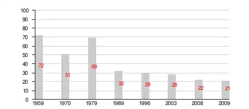 Year | 1959 | 1970 | 1979 | 1989 | 1996 | 2003 | 2008 | 2009 |