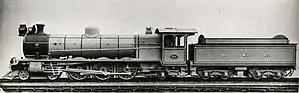 All four cylinders were the same size, with a 14 inches (356 millimetres) bore and 26 inches (660 millimetres) stroke, which presented a number of problems which had to be overcome to arrange two of these in the limited space between the frames. The outer cylinders drove the centre pair of coupled wheels, while the inner cylinders operated on a cranked leading coupled wheel axle. Each inside crank was arranged at an angle of 180 degrees with its adjacent outside crank.[1][2]