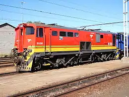 Between 1974 and 1976, the South African Railways placed one hundred Class 6E1, Series 5 electric locomotives with a Bo-Bo wheel arrangement in mainline service. One of them was later withdrawn from revenue service for use as an experimental 25 kV AC locomotive.[1][2][3]