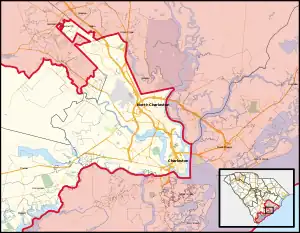 The district has historically been based in Charleston. It has included Myrtle Beach, which became a major tourist destination in the late 20th century, as well as other coastal areas that have attracted retirees and seasonal visitors. From 1993 to 2013, the district boundaries extended from Seabrook Island in the south to the North Carolina border and included parts of Charleston, Dorchester, Berkeley and Georgetown counties and all of Horry County to the North Carolina line.