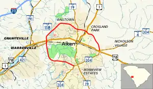 South Carolina Highway 118 (SC 118) is a 13.180-mile (21.211 km) state highway in the U.S. state of South Carolina. The highway is a beltway around downtown Aiken. The highway is officially designated on the road around the southwestern, western, and northern sides of the city. However, it is also concurrent with SC 302 on its southeastern quadrant.