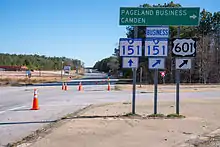 SC 151 bypasses Pageland, while US 601/SC 151 Bus takes right into town