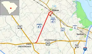 South Carolina Highway 47 (SC 47) is a 5.740-mile (9.238 km) primary state highway in the U.S. state of South Carolina. It serves to connect the town of Elloree with U.S. Route 301 (US 301).