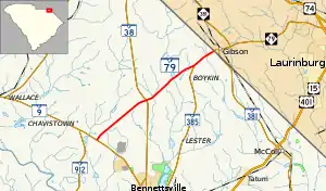 South Carolina Highway 383 (SC 383) was a state highway that was established by 1937 as new primary routing from SC 9 near Bennettsville to SC 79 near Boykin. It was renumbered as part of SC 79 by 1970.[5]