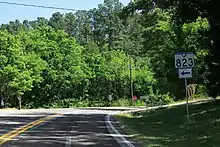 SC 823 begins at an intersection with SC 81 (Main Street) in Mount Carmel, within McCormick County. It travels to the north-northeast and immediately curves to the northeast along the western edge of Sumter National Forest. It crosses over Lott Creek, and then curves to the east-southeast and leaves Mount Carmel and enters the forest proper for a very short distance. It immediately crosses over the Little River. When it curves to the northeast, it again travels along the western edge of the forest. The highway curves to the north and crosses Hartzog Branch. It heads to the northeast again for a short time and enters Abbeville County. Right after the county line, SC 823 crosses over Bowie Branch and White Creek. It heads to the north-northeast and curves to the northeast. It passes Lebanon Cemetery. It then meets its northern terminus, an intersection with SC 72 at a point southwest of Abbeville.[3]