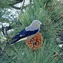 In this range, horned larks (registered as endangered since July 14, 2005)[11] and American pipits live in alpine habitats, announcing their arrival as snow melts and departing before the snowfall begins.[3] Horned larks are sandy to rusty brown,[12] while American pipits are small with a grey top and stripped bottom.[13] Other species, like white-tailed ptarmigan, are endemic to the mountains, where they have designated the southern limit.[3] Among the species that can adapt to high elevations are the Franklin’s, blue and ruffed grouse, red crossbills, white-winged crossbills, gray jay, Steller’s jay, and pine grosbeaks.[3] Whitebark pine (registered endangered since June 20, 2012)[14] can be eaten by Clark's nutcrackers, whose seeds are harvested from the pine.[15]