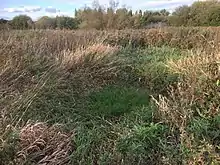 Most of the moated earthworks were filled in during the period when the site was used as a sewage farm.[4] The site is formed of two concentric moats, in the middle of which is a square platform where the manor house once stood.[4] The site is now heavily overgrown, though it can be made out on old aerial photographs.[4]